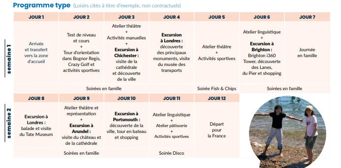 (Découvrir le programme type de ce séjour anglais en Angleterre “British Duo”. Loisirs cités à titre d’exemple ; non contractuels.)