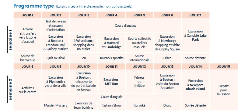 Consulter le programme type de ce séjour linguistique à Boston.
