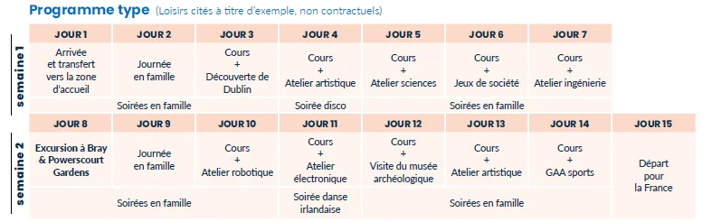 – Ce séjour ado anglais et IA est proposé pour une durée de 2 à 5 semaines.